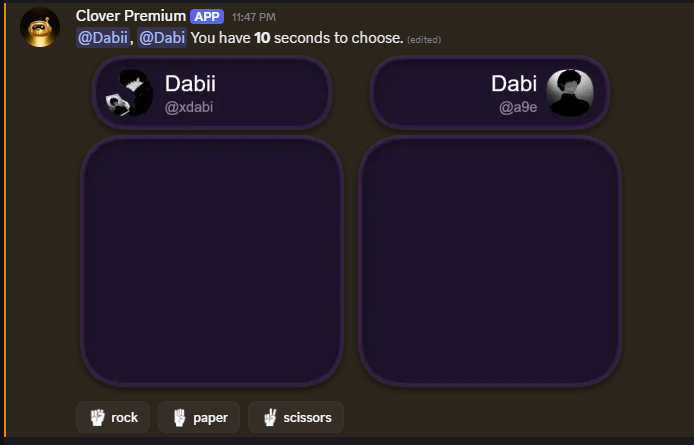 Play: Once accepted, the bot will start the game and prompt both players to make their secret move!