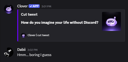 Be creative! The best answers in Cut Tweet are usually the funniest, most relatable, or most insightful ones. Use it as an icebreaker to get to know your fellow server members!